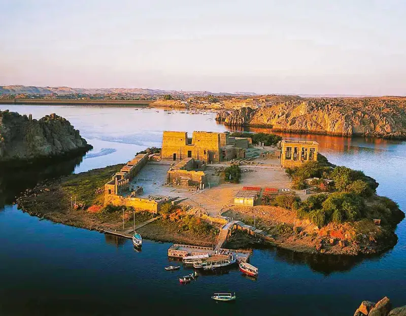 Aswan High Dam, Unfinished Obelisk, Philae Temple, Kom Ombo Temple, Edfu Temple, Valley of the Kings, Hatshepsut Temple, Colossi of Memnon, and all others - Private motorboat transfer to and from Philae Temple on Agilkia Island