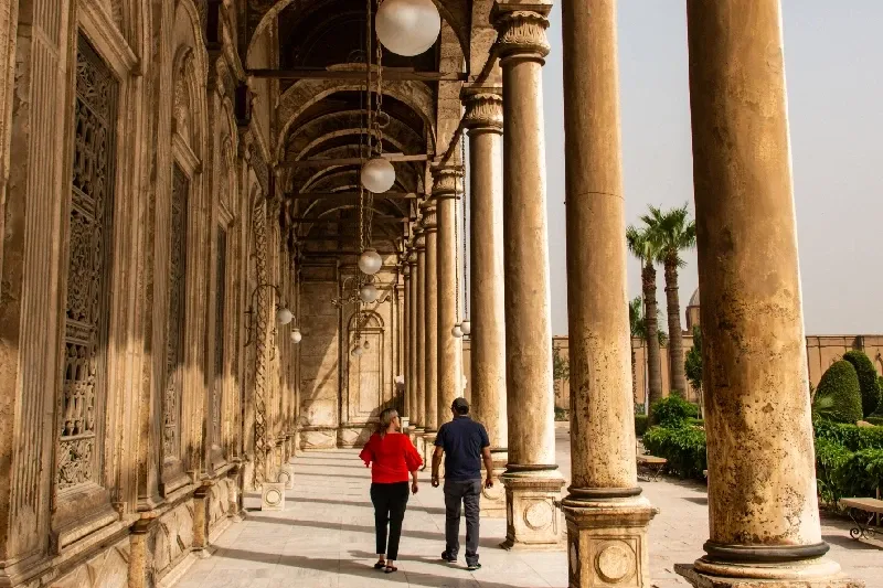 Lightweight, loose-fitting clothing that covers your shoulders and knees is ideal — both for cultural respect and practical comfort in the heat. Think linen trousers, long cotton skirts, and breathable tops. Men should avoid shorts at historic and religious sites. Flat, closed-toe shoes are strongly recommended when walking around temples and pyramids — the ground is uneven and dusty. Red Sea resort towns like Hurghada and El Gouna are far more relaxed; beach attire is completely normal there.